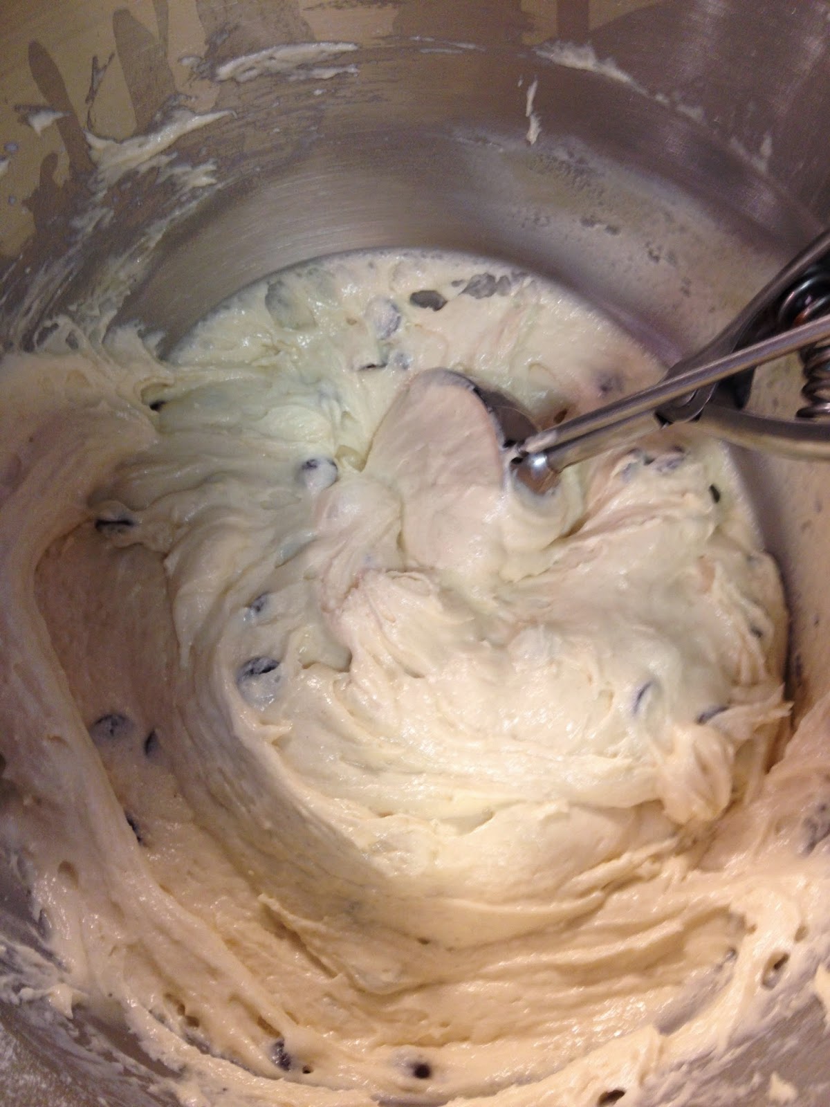 - Por útlimo, incorporar las gotas de chocolate y mezclar con la espátula